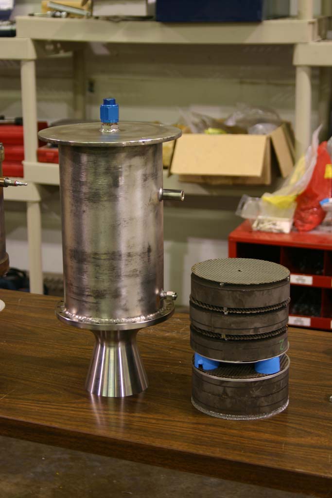 decomposing the 50% peroxide before the glow plug chamber. The catalyst all got evenly orange hot from