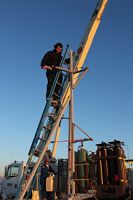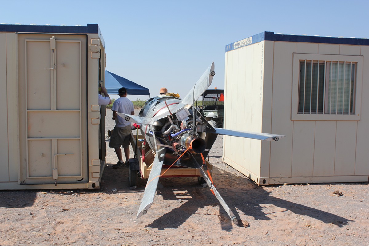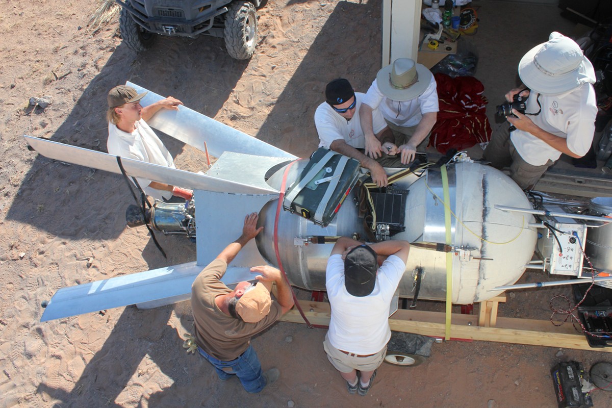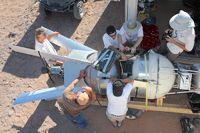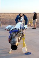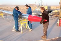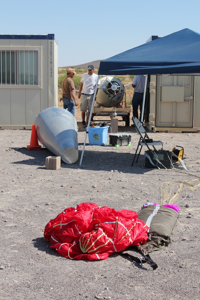 During post-transport inspection we found that one of the support tubes holding the pressurant tank above the LOX tank had broken. A field repair was undertaken, involving a purchased welder and some rewiring of a generator. A full day was also spent doing the final rigging of the return-to-site guided parafoil system.