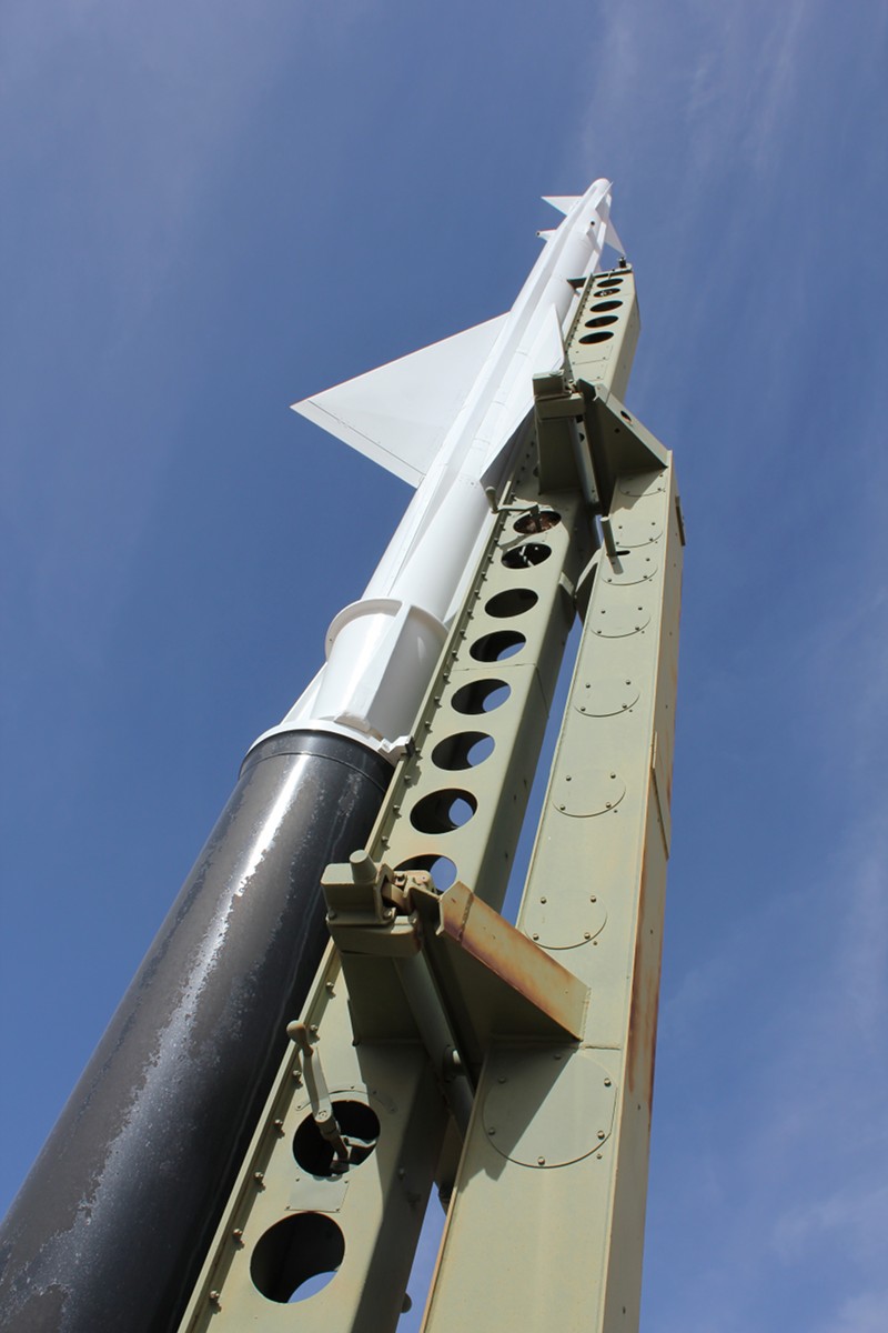 On Sunday we went to visit White Sands Missile Range, and spent a good amount of time exploring their rocket garden. Having just spent a bit of time designing and building a launch stand for a large rocket, I took a lot of photos of how they did it. For the most part, people stuck with rails.