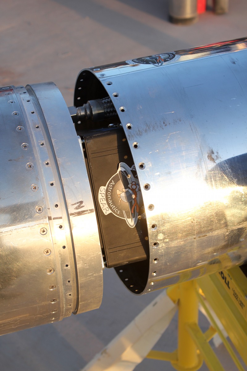 The recovery system on this rocket was a novel one for Armadillo, a guided parafoil system. On landing the rocket was meant to behave similarly to a modern skydiver, steering itself to a landing zone and flaring the parachute at the last moment to reduce landing loads. The steering system, with integrated actuators, GPS, radio receiver, &c, was provided by Wamore Inc, with experience in military self-guided airdrops.