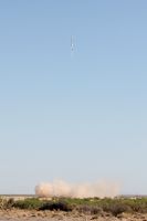 On the return pad ops went nearly flawlessly, other than a small LOX leak through the TTS valve that caused a short delay. The rocket launched flawlessly, coming off the stand perfectly straight and accelerating away from the launch pad. The thrust of the engine destroyed the graphite blast deflector, whose support had been damaged during one of the mis-fires during the first attempt.