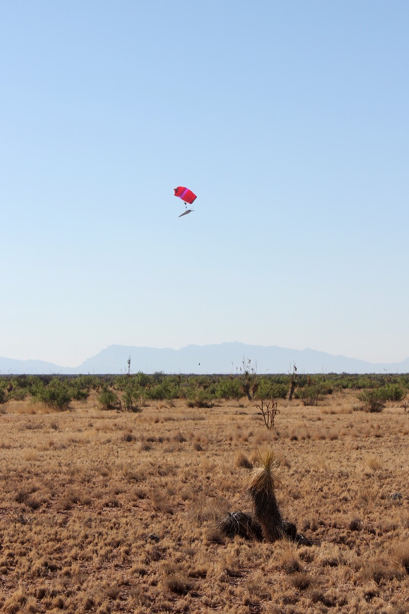 Instead it was secured, such that the release could not be actuated. The rocket was approximately 1000lb at MECO, compared to an intended parachute deployment at the dry weight of under 500lb, reducing all margins by half. The third and smallest ring was ripped off the three ring assembly, which released the parachute from the rocket. The parachute fell collapsed to the desert below.