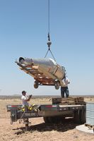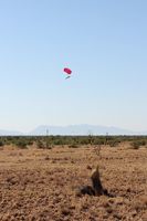 The drogue was released, and followed shortly thereafter by the main. Though the main deployed with the rocket quite heavy, it stayed attached to the rocket. However, some parachute shroud lines were broken in the process, making it impossible for the Wamore Automated Guidance Unit to control the main canopy. Dalek spiraled in under canopy and crunched into the desert with most of the propellant load still onboard. Fuel leaking out of a broken line started a small fire in the bushes and burned the wiring in the engine bay, most of which was burning out as the Armadillo team arrived moments later. The local fire crew arrived shortly after that and put out the remaining shrubs. The propellant tanks remained intact.