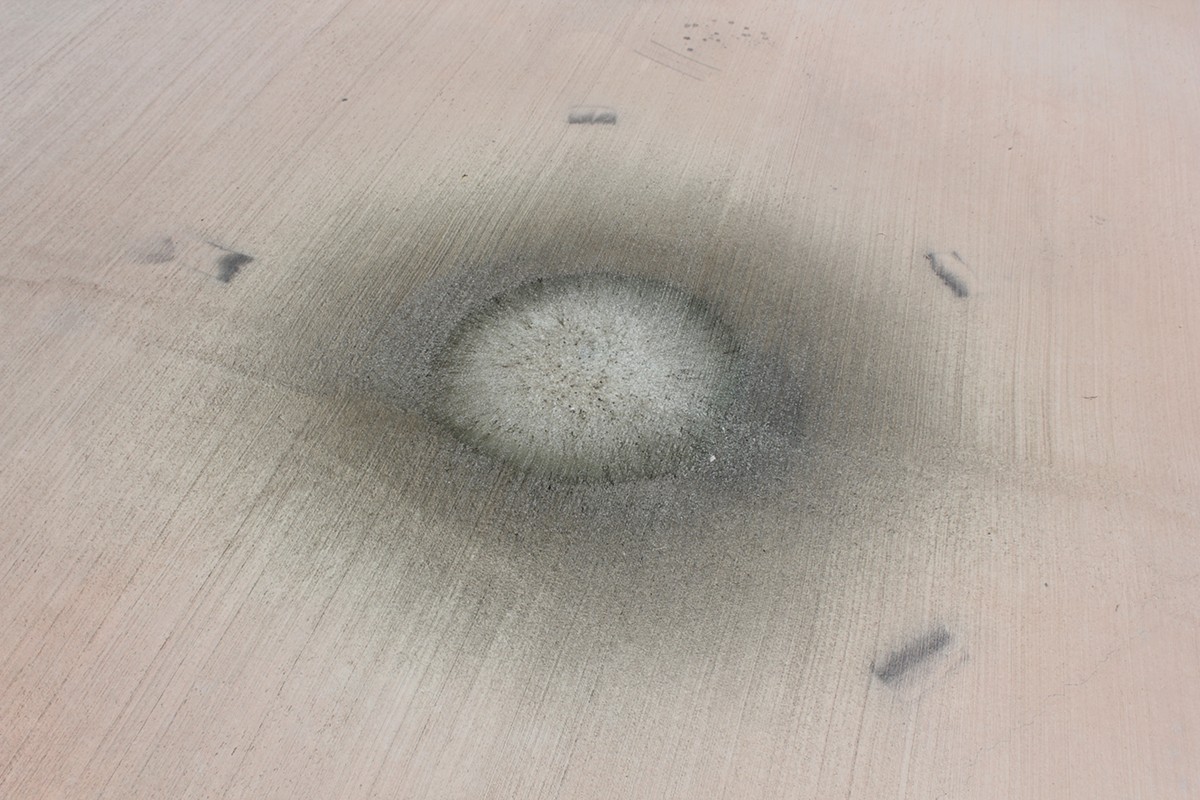 The rocket fell mostly flat, with asymmetry creating a roll of increasing rate as it fell. It impacted the desert floor, tearing the propellant tanks at the bulkhead welds and dispersing the remaining propellant. The fuel was ignited, possibly from a spark of the electrical system or just from kinetic energy of tearing metal, and a small area of shrubbery was torched.
