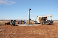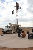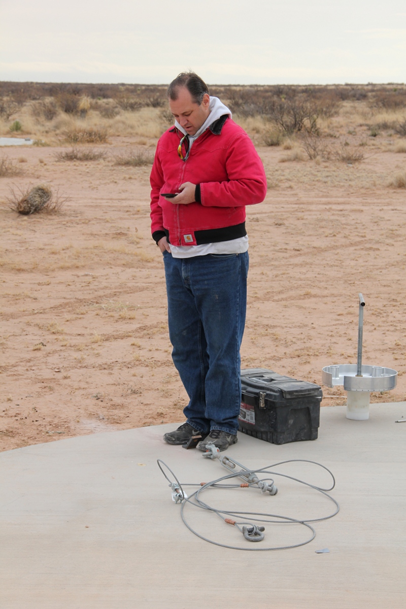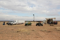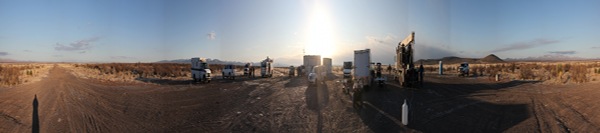 On Friday and Saturday we were on-site at Spaceport America setting up the launch site and doing a hardware checkout. Our flights at the spaceport are in the vertical launch area, which is about four and a half miles away from the Terminal Hangar Facility and the runway. Our chosen launch spot is one of the 10 meter circular concrete pads that the spaceport installed in the last year of the Lunar Lander Challenge, 50 meters from a small facsimile of the moon. Launch control is set up on card tables next to the temporary building from which our friends at Up Aerospace launch their rockets.