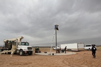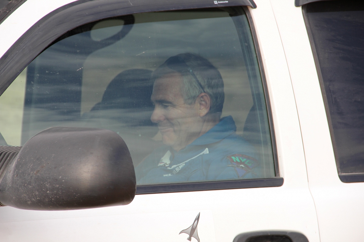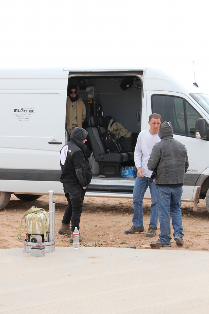 The crew drove to New Mexico on December 1st, following the crane truck and rocket trailer which departed the day before. In a flashback to the X Prize Cup, Neil found out that the pickup and trailer have extra rules governing its transport through New Mexico, but this time thankfully the rocket made it into the state without needing to call the governor.
