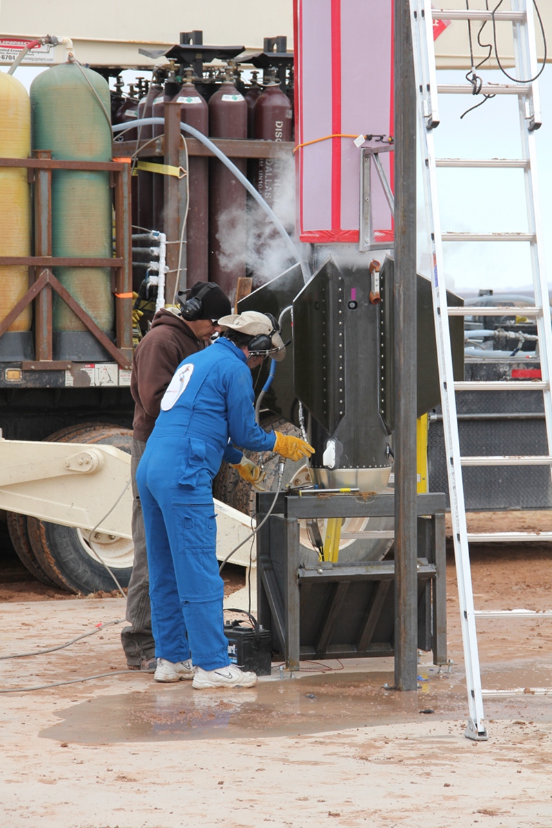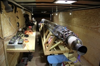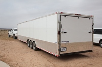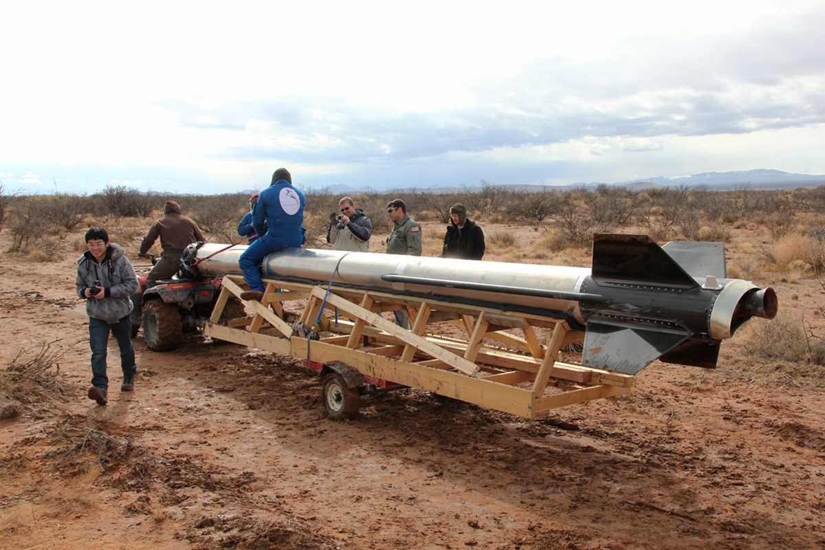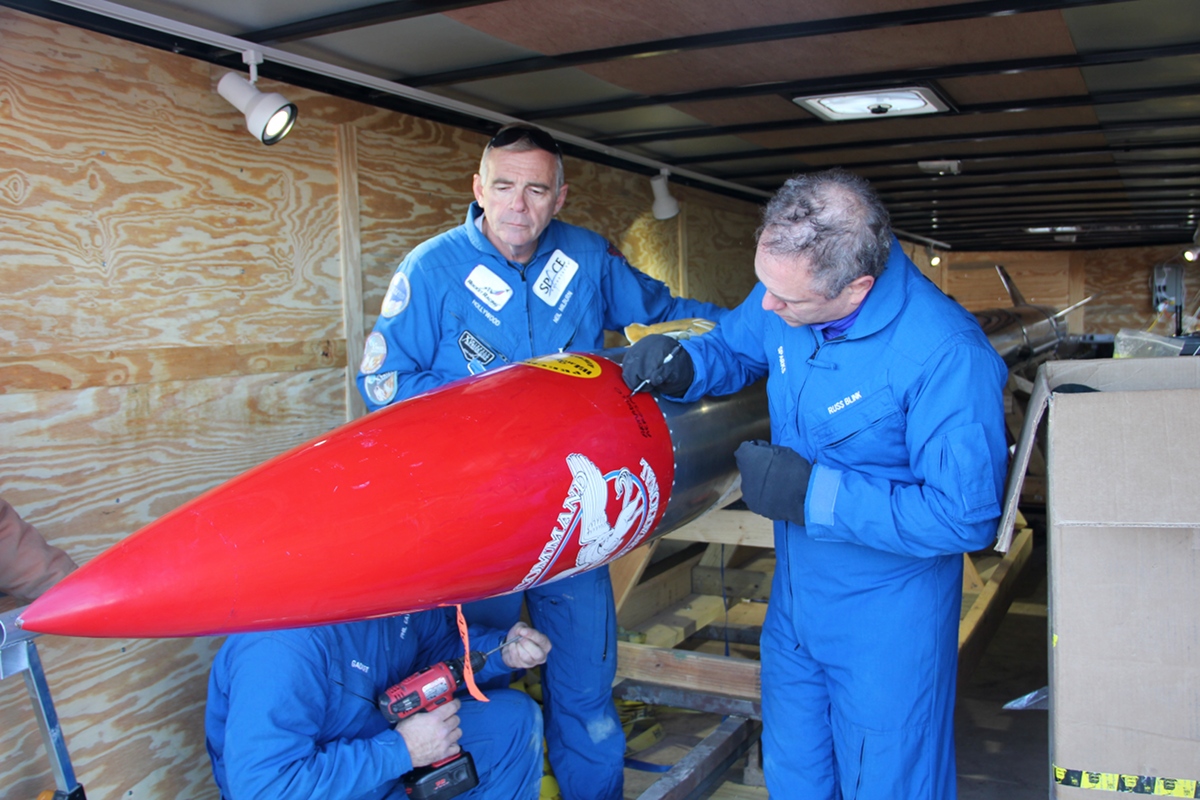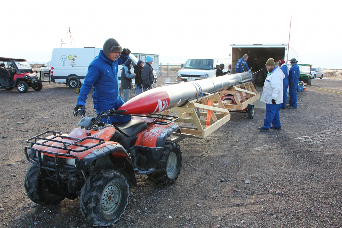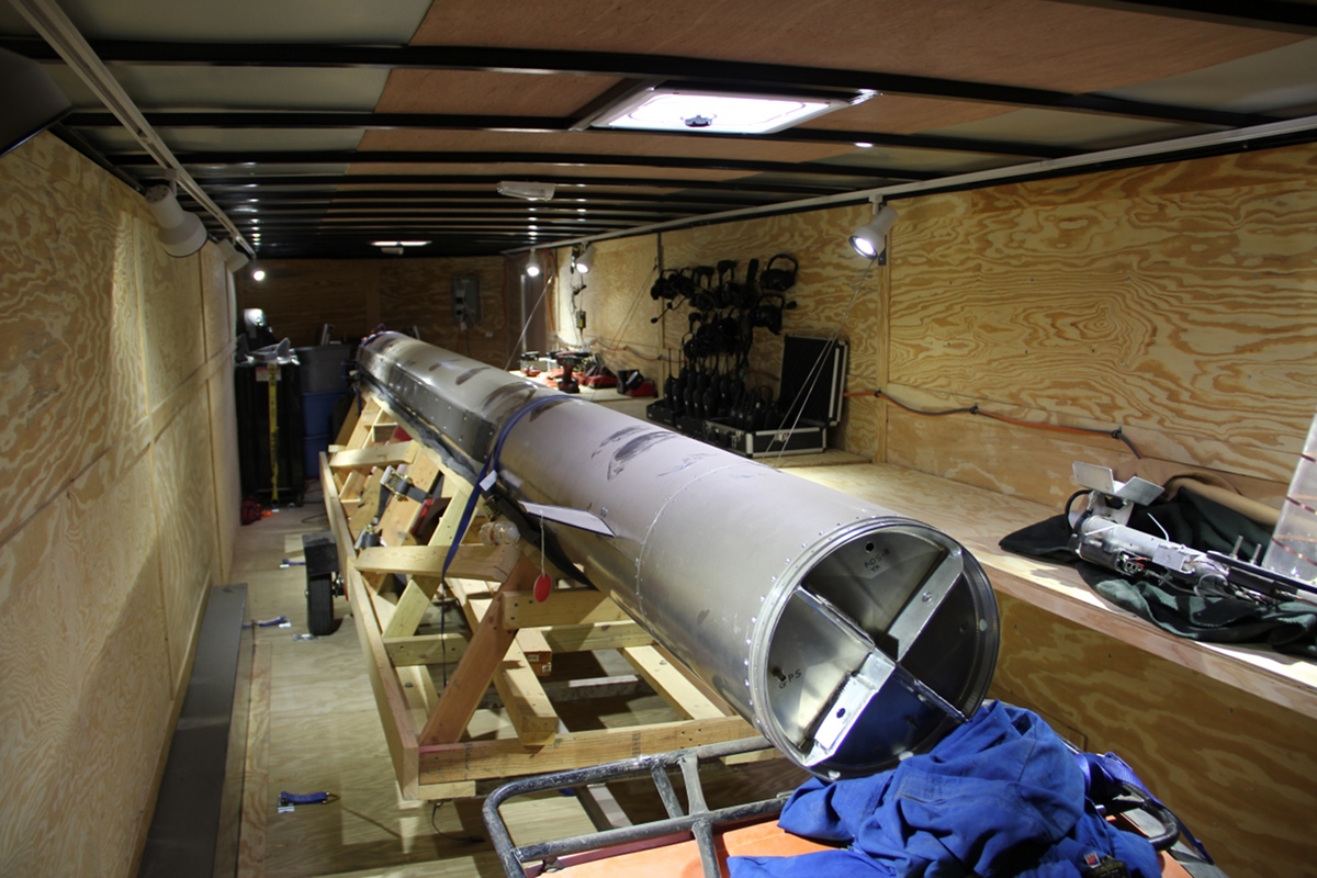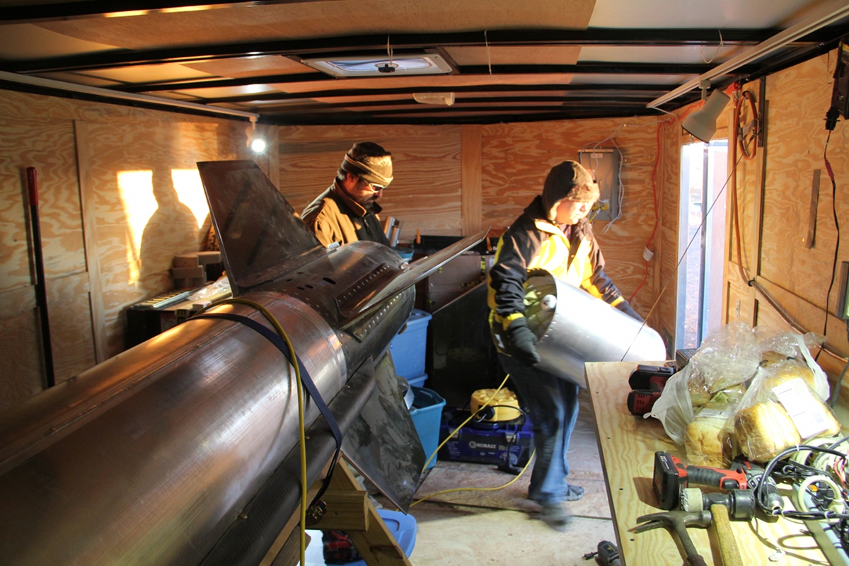 We bought a new enclosed trailer to serve dual purpose as a way to haul the rocket to New Mexico and to act as a temperature-controlled mobile workshop, with tools and workbenches necessary for any last minute fixes or modifications. It also made it possible for us to keep the rocket warm overnight, to keep the onboard batteries within their normal operating temperatures. Running everything on our own generator we could theoretically set up to do a launch anywhere in the U.S.