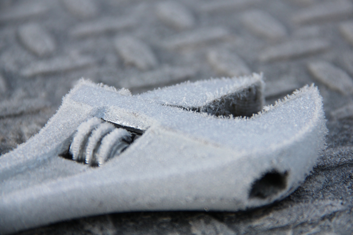 On Sunday we were on site just after sunrise. It had frozen hard overnight, and deposited a layer of frost on everything.