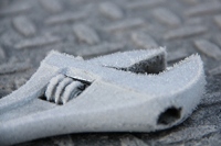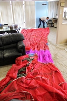 The nose was connected to the rocket and a balloon parachute, or ballute. The ballute was chosen as it won't deploy inverted, unlike a parachute, and is well suited to supersonic flight. Our ballute design was not quite up to the task. The vents did not stay open to keep the ballute inflated, and it was too close to the rocket which put it in extremely turbulent air. The ballute is made of very heavy fabric (5.5 ounce ripstop Nomex) and is eight feet in diameter, but dragging it through supersonic thin air it flapped around so hard that the fabric tore in multiple locations.