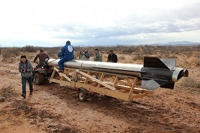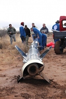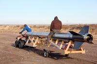 We loaded the rocket onto the trailer and pulled it back to the launch site. Everyone managed to get unstuck and headed back as well. We spent the afternoon re-packing hardware, loading the trailer, and taking down the launch stand, and were packed up and out of the spaceport in the early afternoon.