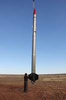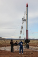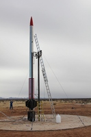 We got the rocket unloaded and installed on the launch stand. We had tested the stand with the rocket ahead of time, but it was the first time we'd bothered to unhook it from the crane. It was good to see it freestanding and ready to launch.