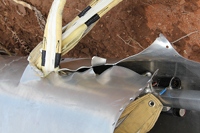 | crunched boattail | gimbal bolts pulled out | bent gimbal mount and arm |
