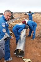 Most of the crew headed out to the landing coordinates, except Tommy and James who stayed behind to get started on packing up the site. The snow that had fallen in the previous days had all melted to create a couple inches of slick mud. The rocket was conveniently sitting on a road, but it was a mud road, and all of the vehicles had a solid coating of orange mud by the end of the day.