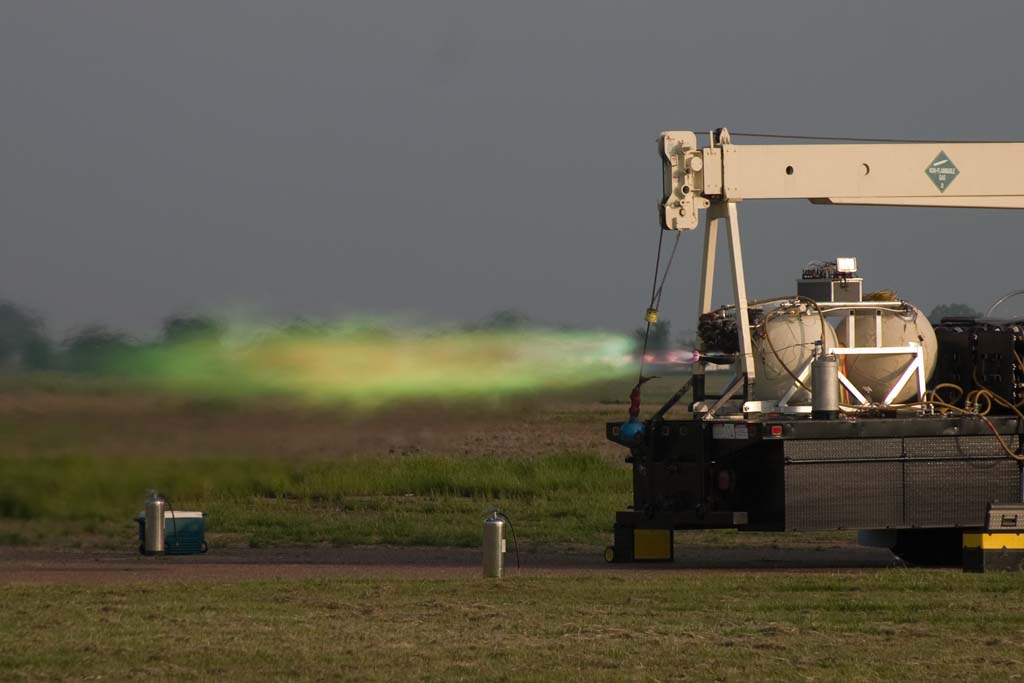 http://media.armadilloaerospace.com/2008_05_12/greenPlume.jpg (during a low-throttle test)