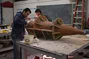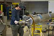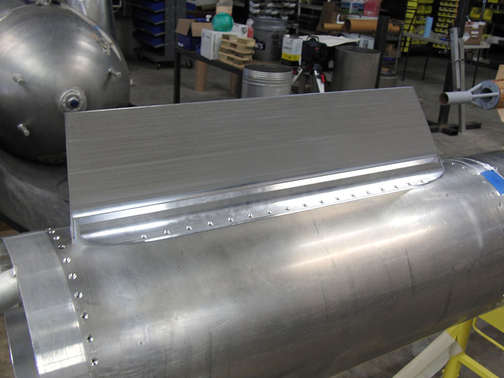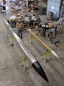 Last year we started work on a new vehicle planform, which we're calling the tube rocket. From our perspective it is a Supermod whose 36 inch spherical tanks have been replaced by 15 inch cylindrical tanks with a common bulkhead. Otherwise it is quite similar to our other vehicles; low pressure LOX/alcohol as propellant, regulated helium pressurization, the same type of engine as a Mod, the same engine gimbal and roll vane for guidance and control, and the same computer box and plumbing schematic.