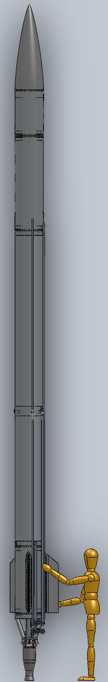 From an external perspective, it's looks like a fairly large liquid fueled sounding rocket. We're using a dual parachute deployment system that would be familiar to anyone in advanced high power rocketry (HPR), adjusted for a rocket that goes rather higher and is quite a bit heavier than most HPR.