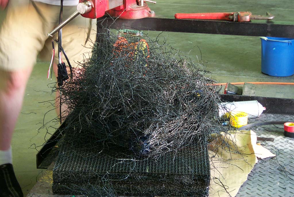 basically a mass of thin stainless steel ribbons that have been crimped like