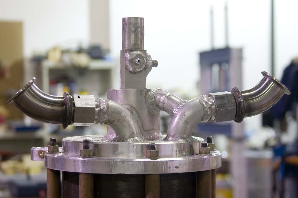 manifold, up the bridge tube, and back down into the inner fuel manifold. We fixed this in a second revision by