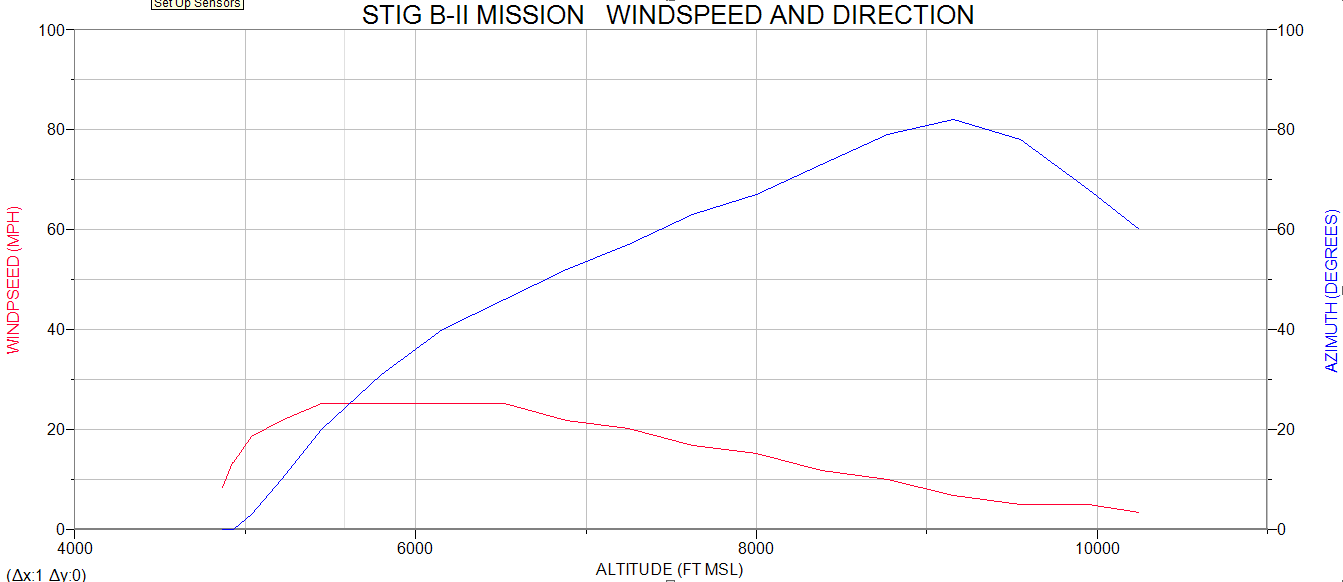 The vehicle was weather cocking into the wind and as the altitude increased, the winds also increased. Had the vehicle succeeded in gaining any significant altitude, the winds swung around clockwise until we reached the jet stream which was from the more traditional westerly direction.