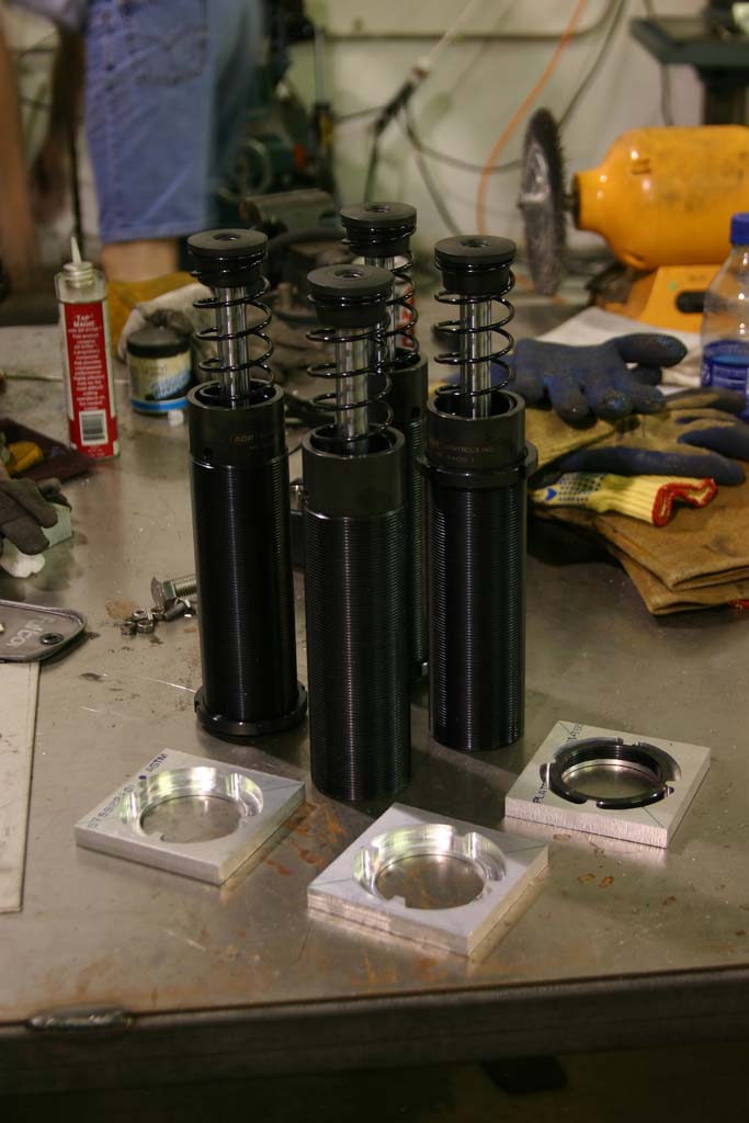 vehicle I made some plates that capture the jam nut and let us screw the shocks