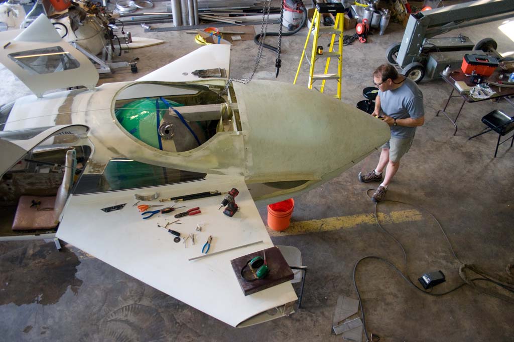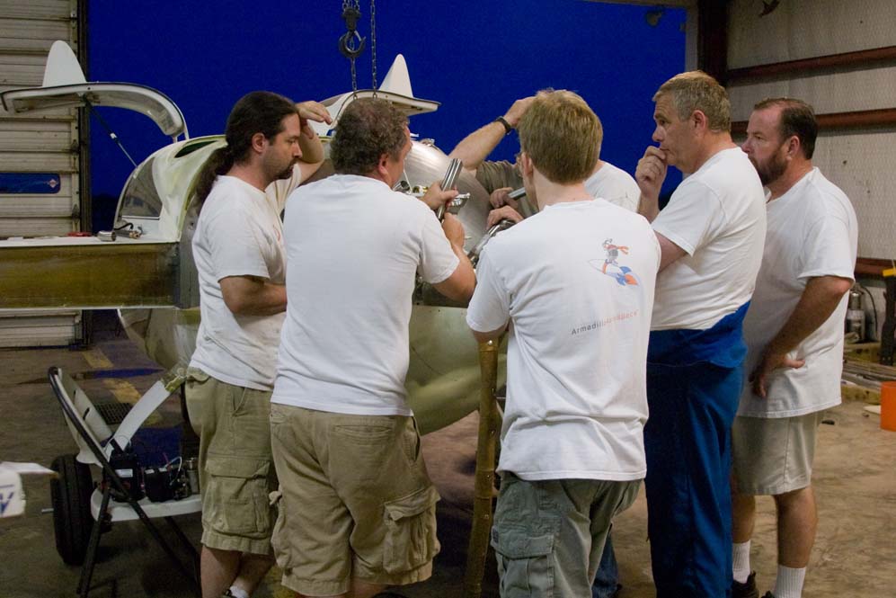 The airframe arrived at the new Armadillo hangar on May 30 and we began static testing about 2 weeks later. Taxi tests began just 35 days after the arrival of the airframe and the FAA was scheduled for their inspection but postponed it until after the Oshkosh airshow. When you factor out the delays from weather and postponed inspections we had a flyable aircraft and power plant ready in less than 60 days. It would follow Armadillo form to have a new flying platform this year and to build it in a very short amount of time with the majority of the team still working only two to three days a week.