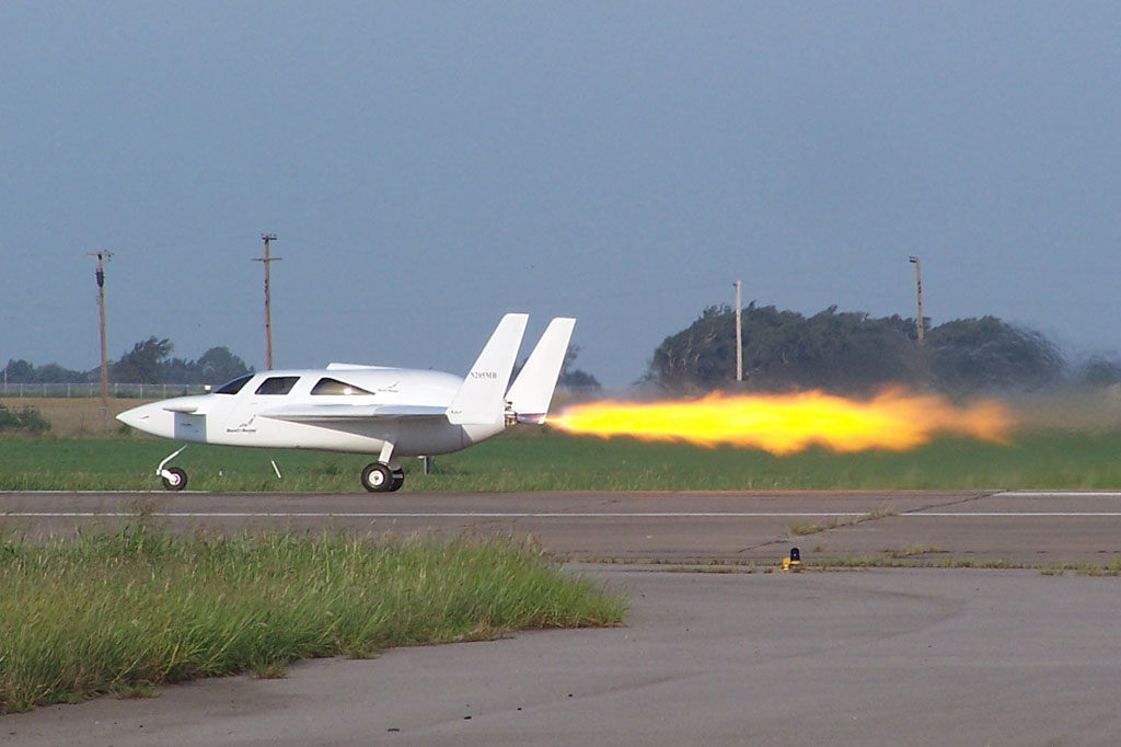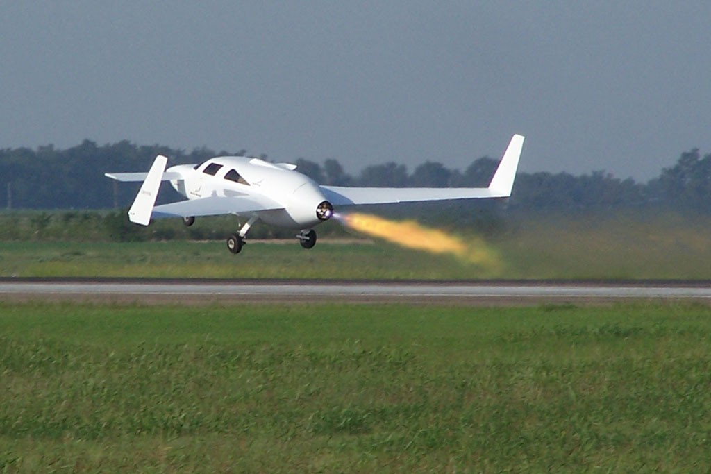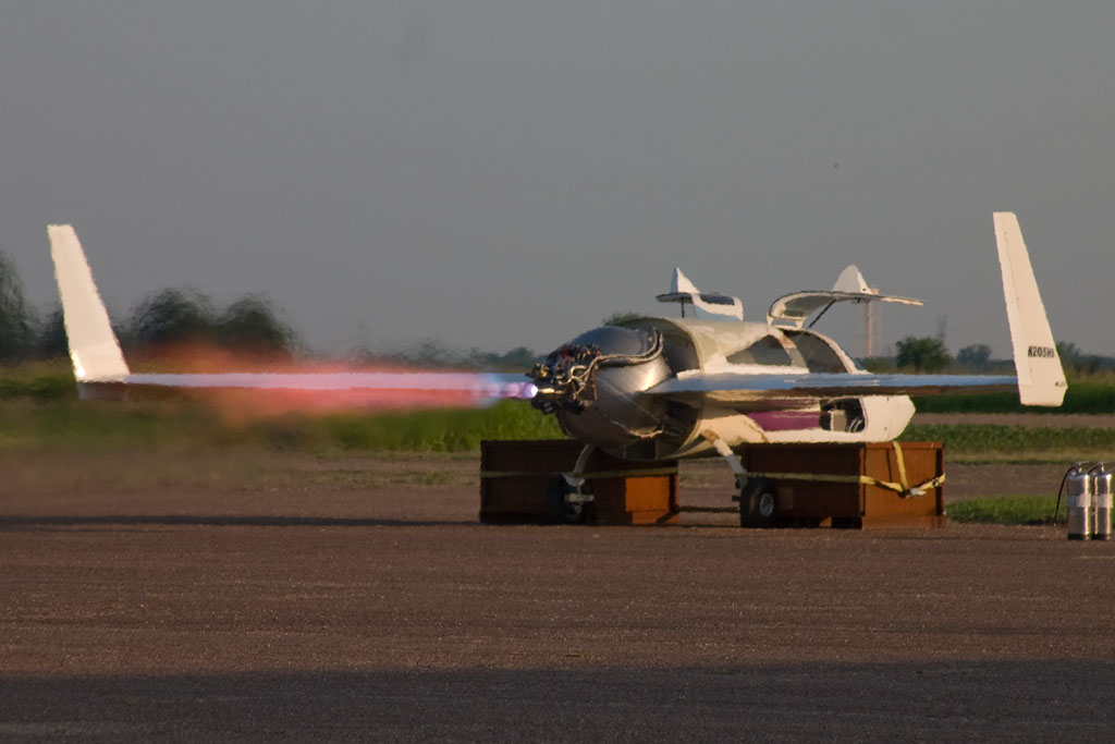 Second flight, Oklahoma Spaceport, August 26, 2008, takeoff and landing (WMV, 7 & 4MB). The Rocket Racing League has already released a video of the third flight (date in the title card should say 2008, of course).