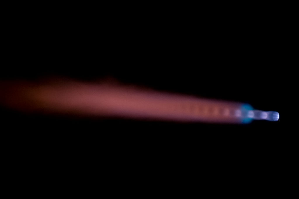 It is REALLY hard to keep a camera zoomed all the way in and on target during flight. When the flame goes out, and the bright yellow plume is gone, it is impossible with the autofocus going crazy! (Of course Matt would be able to do it, but he is a Genius with a video camera!)