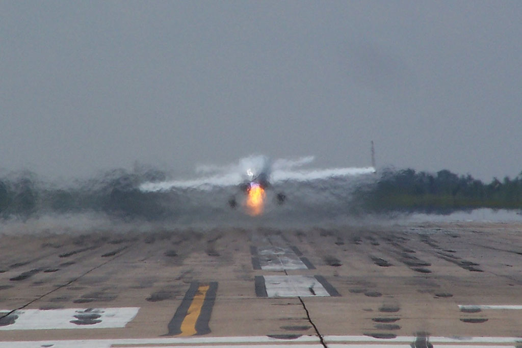 Seeing the high speed taxi was pretty cool all by itself. The nose lifted up quickly and set down so smooth. Kind of caught me off guard it was so fast. It wasn't until the next week, after a few days rain delay, that we got to see the first flight.