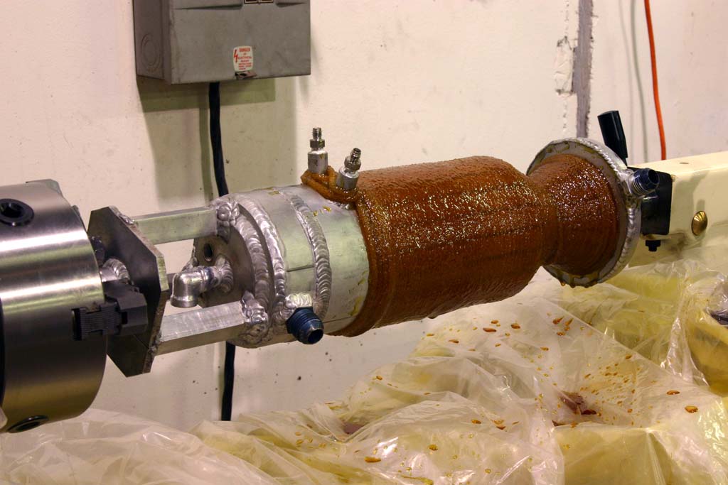 the lathe, soaked 100 of 1/8 thick fiberglass cord in a tub of epoxy, and set