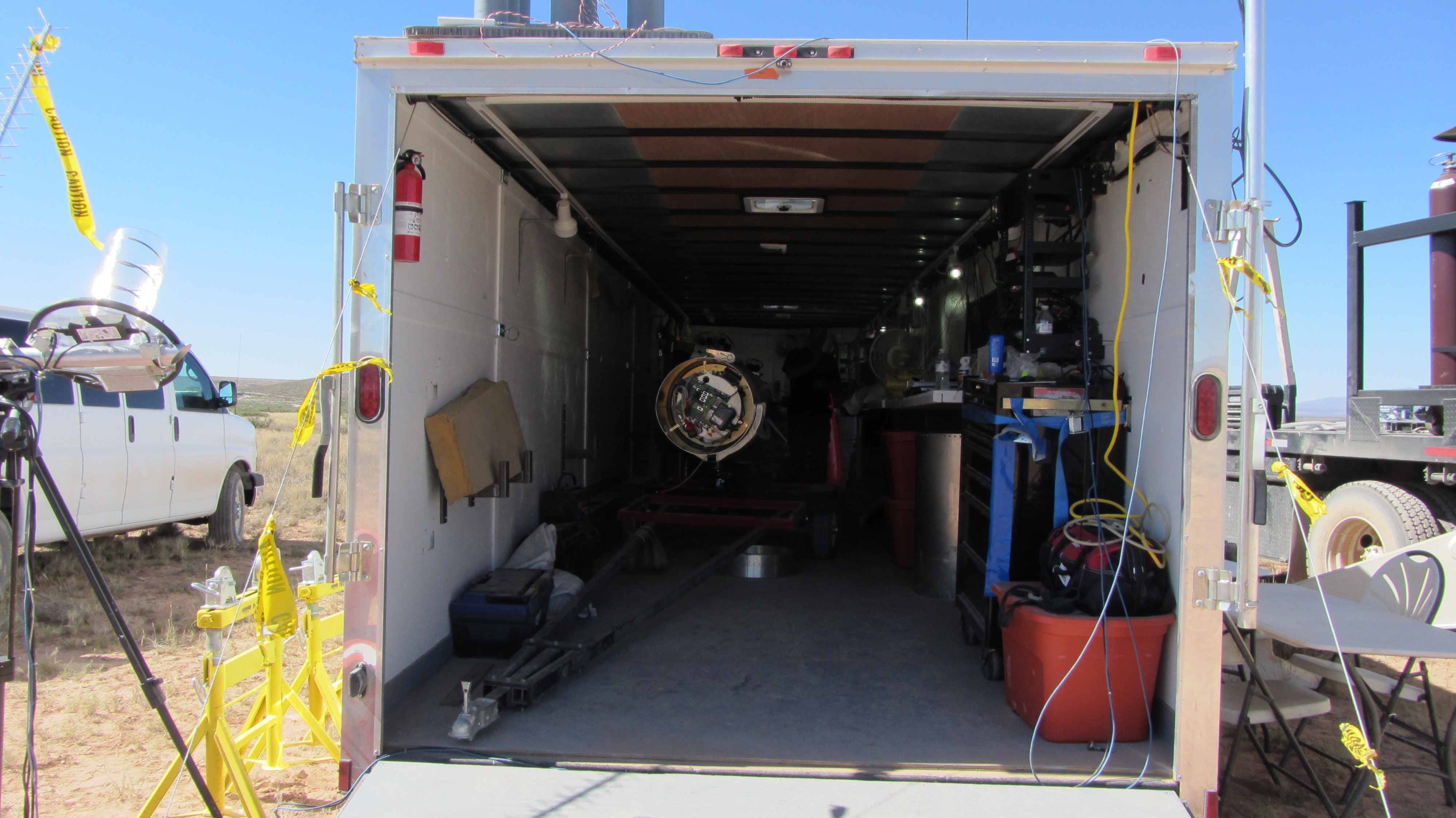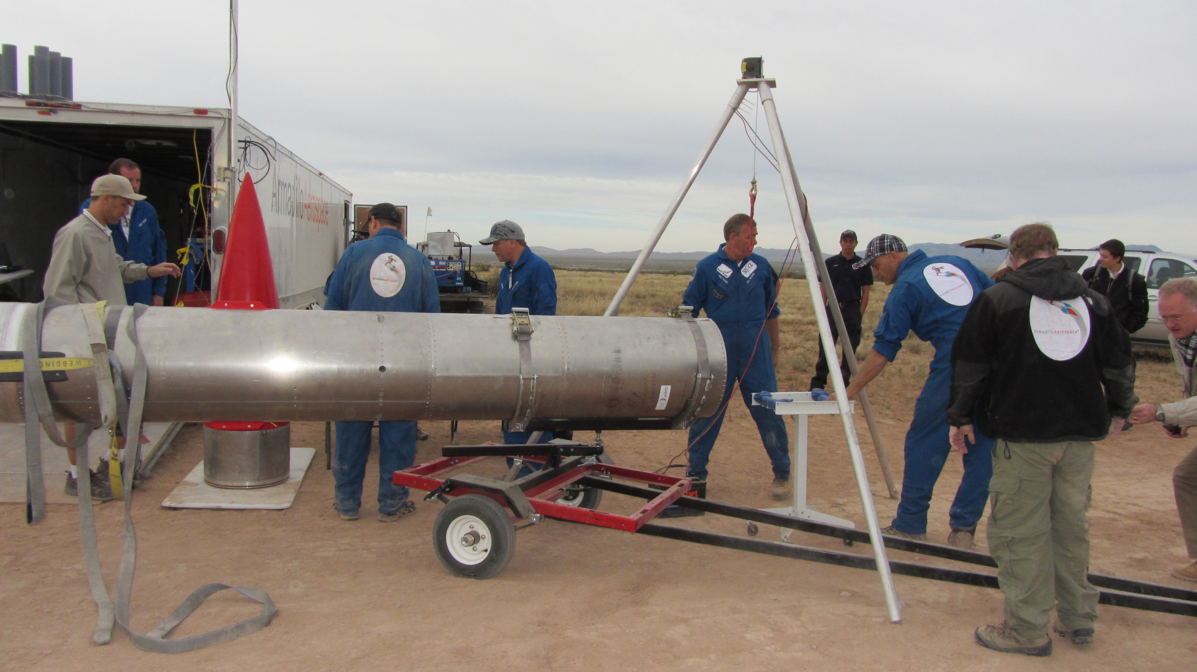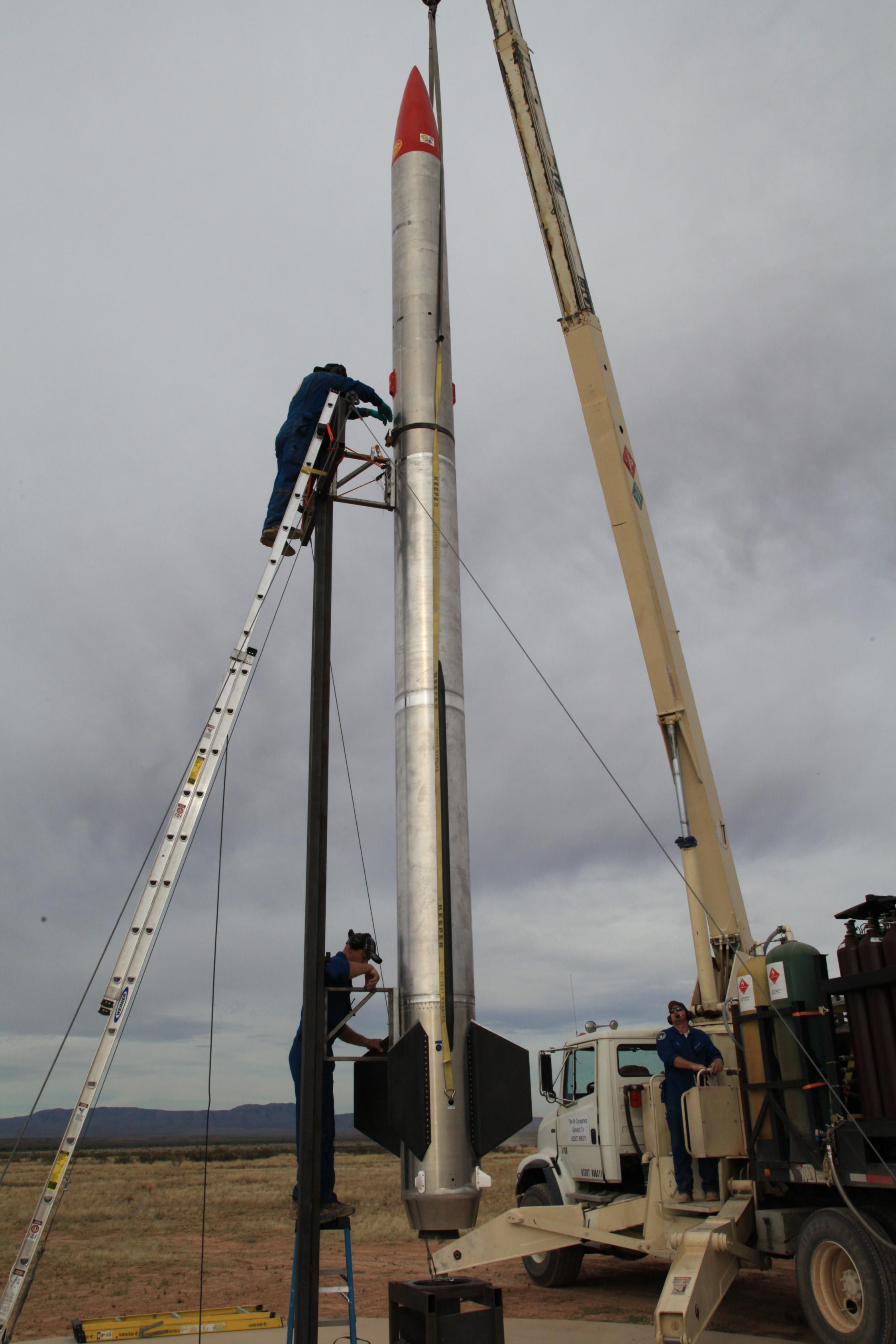 Friday was for tear down ready to install the payloads and to work on the recovery system installation. Wamore still had to program the AGU (Automatic Guidance Unit) for the requisite landing spot and then all the hardware had to be reinstalled. The new tripod built for lifting the vehicle when recovering in the field proved invaluable for installing and removing the modules. During this period we also pumped up the HP helium tank to 5,000-psig and TU Braunschweig pumped down their payload with a vacuum pump which ran all night. The team departed the launch site around 4:00 p.m. to attend the mandatory MRR (Mission Readiness review) which this time was held at the NMSA offices in Las Cruces. It was a bit cramped with so many attending but this looks like it will become the venue of choice for future MRRs.