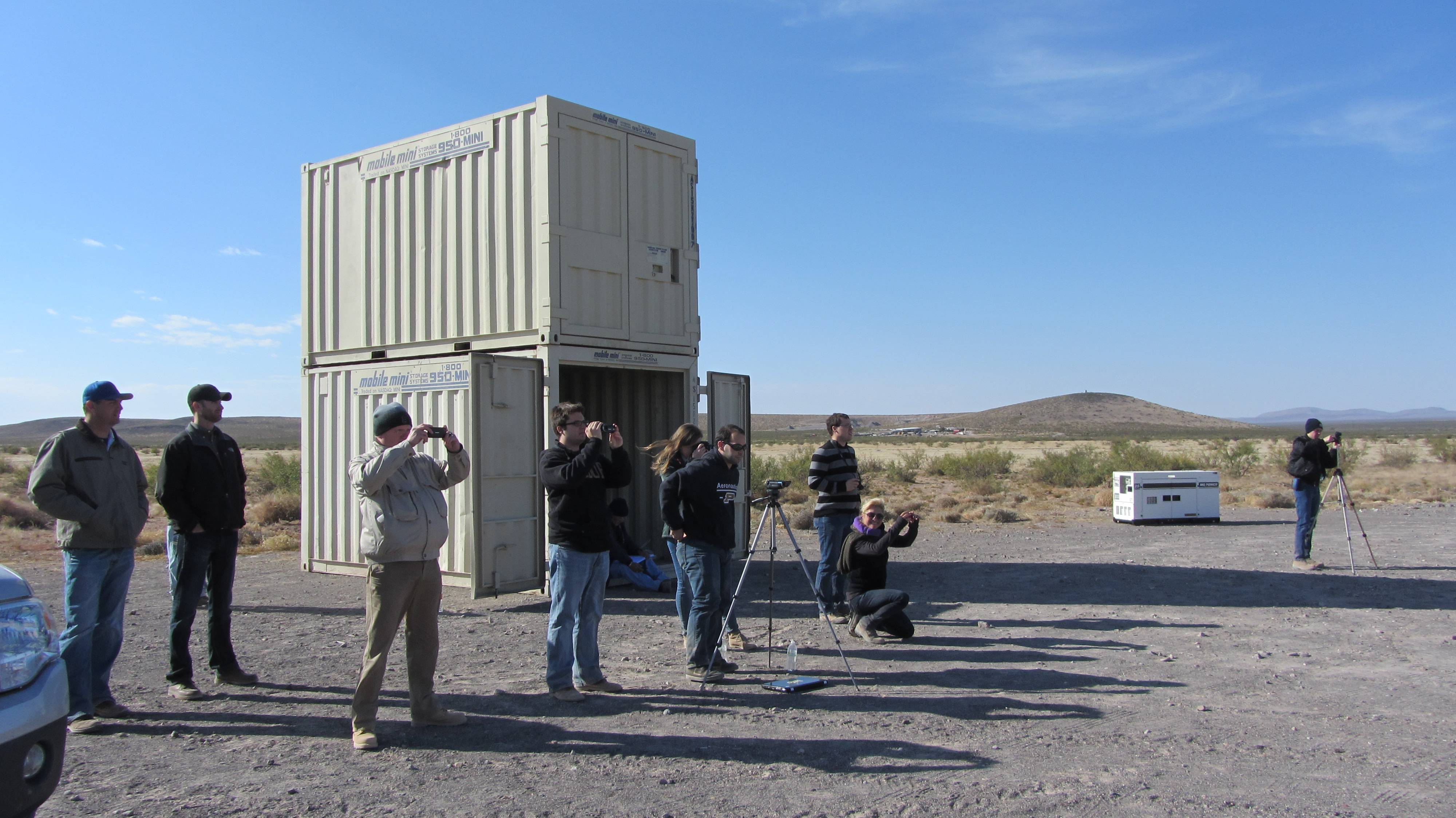 We decided on a 6:00 a.m. departure from the basecamp hotel which put us on the pads at ~7:00 a.m. entering from the southern route. Sunrise was at 7:10 so we had good dawn light on arrival. Weather conditions were acceptable with very light winds but there was scattered to significant cloud cover. This is no longer a problem unless the ceiling drops below 5,000-ft AGL or visibility is less than 10-nm. Our launch license allows us to launch through cloud at our discretion. Cloud ceiling is checked both visually and with the closest AWOS in El Paso.