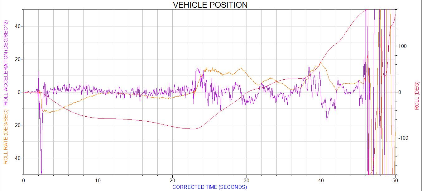 There had been a slow negative roll during the boost phase of 4-deg/second. Post boost, the roll reversed at a slightly higher rate of 13-deg/second. It is uncertain if this roll would have continued because as soon as the nose cone and ballute deployed there were wild oscillations although, it does appear that as the oscillations died down the roll reversed once again. This observation is based on the straight line transition from +180 to -180 just prior to drogue release but -180 to +180 post drogue release.