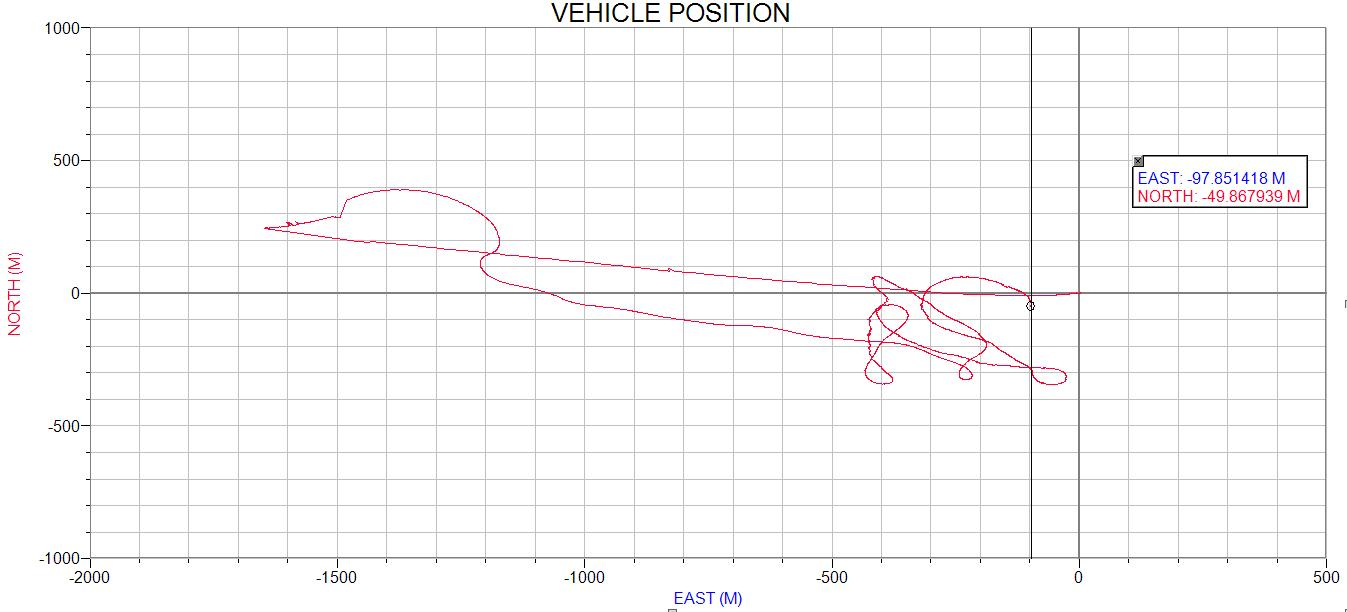 Above shows location of the actual landing location (white) and the desired (yellow) about 50-m distant. In retrospect, this was a little too close the trailer and next time we will chose a location somewhat more distant.