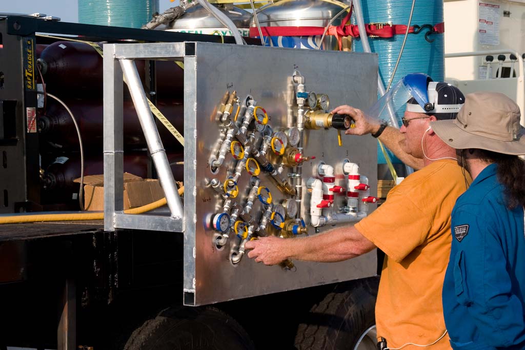 Joseph tries out his new propellant loading manifold panel.