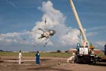 The crew works to get a new engine on the Mod.