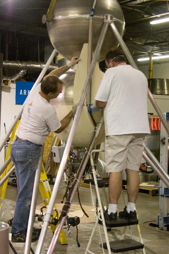 Applying insulation to the second module.