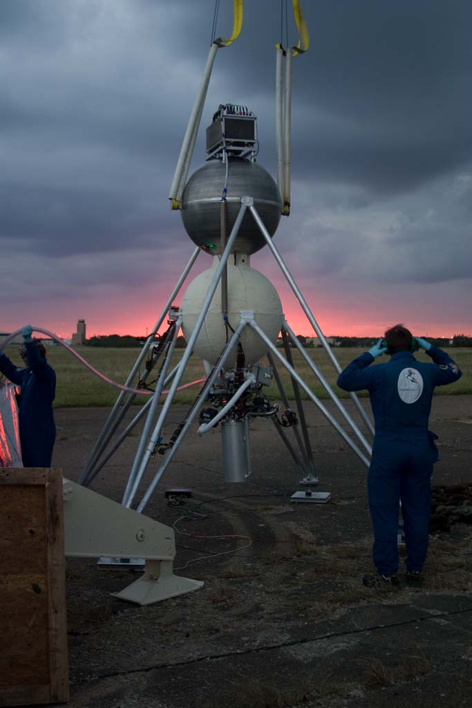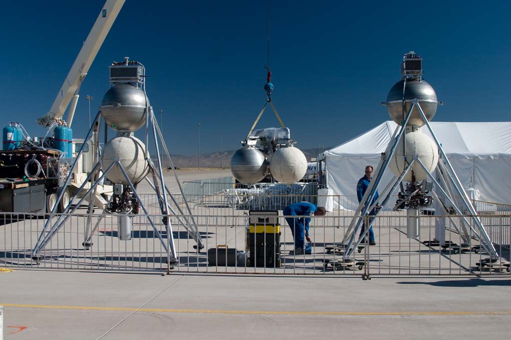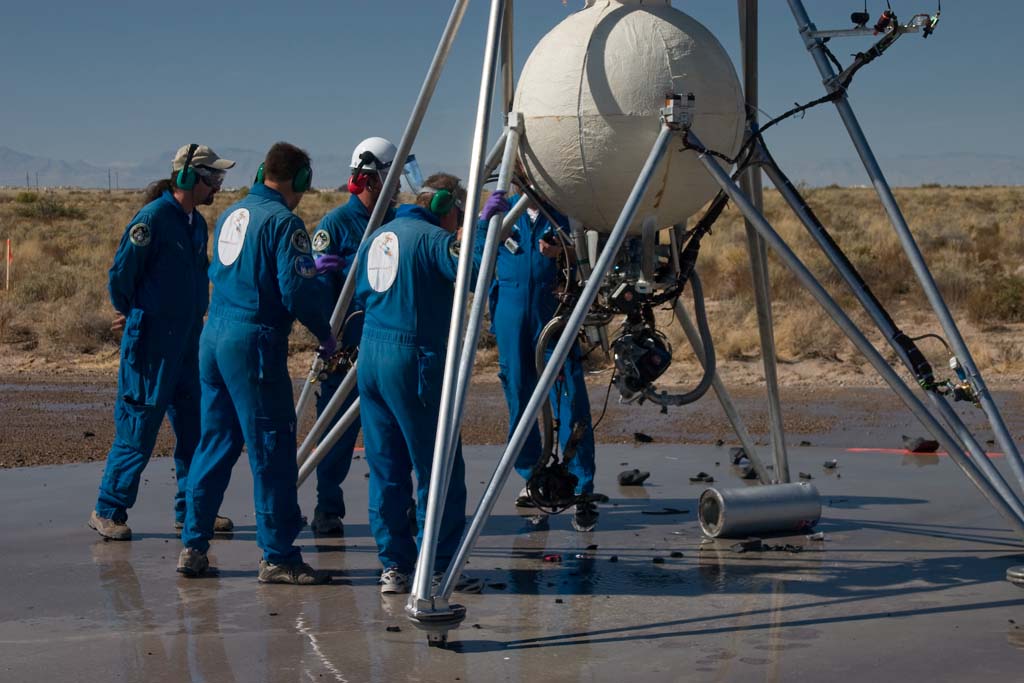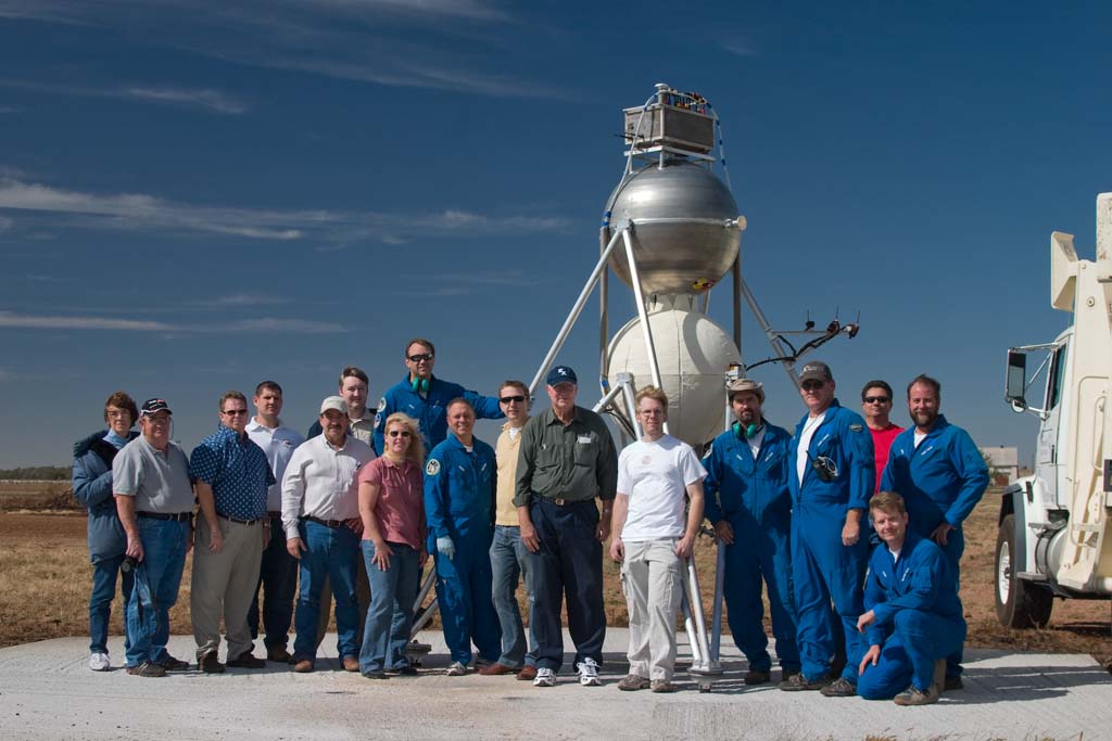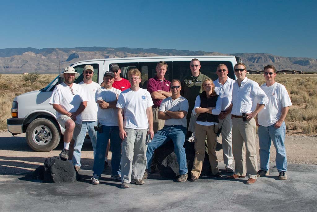 The Armadillo team, and Air Force and X Prize representatives out at the pads.
