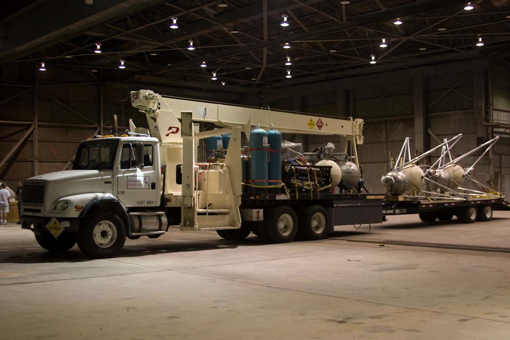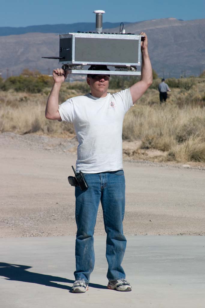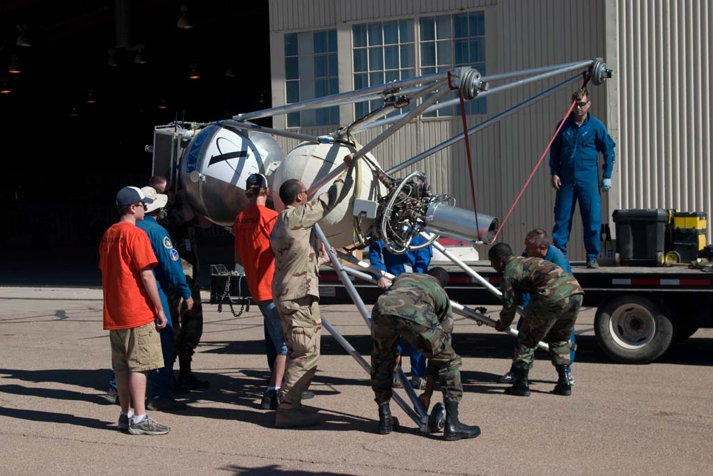 The Air Force and X Prize Cup volunteers help move a Mod since we can't perform hazardous ops in this location.
