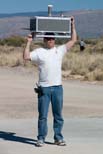 Russ walks the computer box between pads to get the GPS survey.