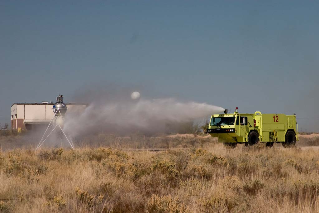 The Holloman fire crew puts out the fire.